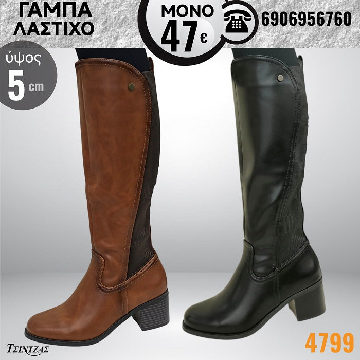 Οι Boots 4799 είναι η ιδανική επιλογή για όσους αναζητούν κομψότητα και άνεση. Διαθέτουν γάμπα με λάστιχο, προσφέροντας ευκολία στην εφαρμογή και τέλεια προσαρμογή στο πόδι. Το ύψος τακουνιού των 5 εκατοστών προσδίδει μια διακριτική ανύψωση, διατηρώντας παράλληλα την άνεση για καθημερινή χρήση. Με μοντέρνο και κομψό σχεδιασμό, αυτές οι μπότες είναι ιδανικές για κάθε περίσταση. Αναβαθμίστε το στυλ σας με τις Boots 4799, πάντα με την εγγύηση των Υποδημάτων ΤΣΙΝΤΖΑΣ.