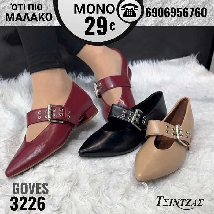 Οι Goves 3226 συνδυάζουν κομψότητα και άνεση για κάθε περίσταση. Με μυτερό τελείωμα και μπαρέτα για σταθερή εφαρμογή, προσφέρουν στυλ χωρίς να θυσιάζουν την άνεση. Το τακούνι ύψους 2,5 εκ. τις καθιστά ιδανικές για πολύωρη χρήση, ενώ ο κομψός σχεδιασμός τους ταιριάζει με κάθε εμφάνιση.