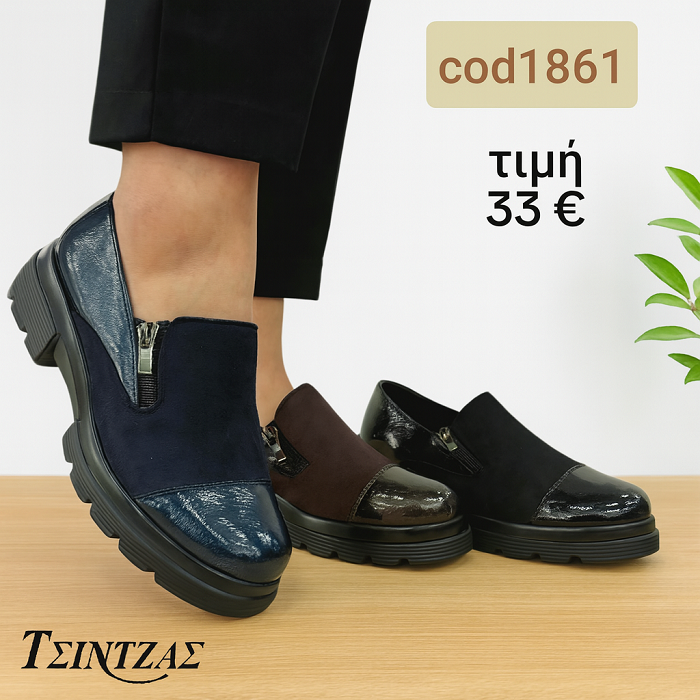 Στυλάτα και άνετα slip-on παπούτσια με πλαϊνό φερμουάρ για εύκολη εφαρμογή. Συνδυάζουν ματ υλικό με γυαλιστερές λεπτομέρειες για μοντέρνο look, ενώ η ανατομική τους σόλα προσφέρει άνεση όλη μέρα. Διατίθενται σε μπλε, καφέ και μαύρο.